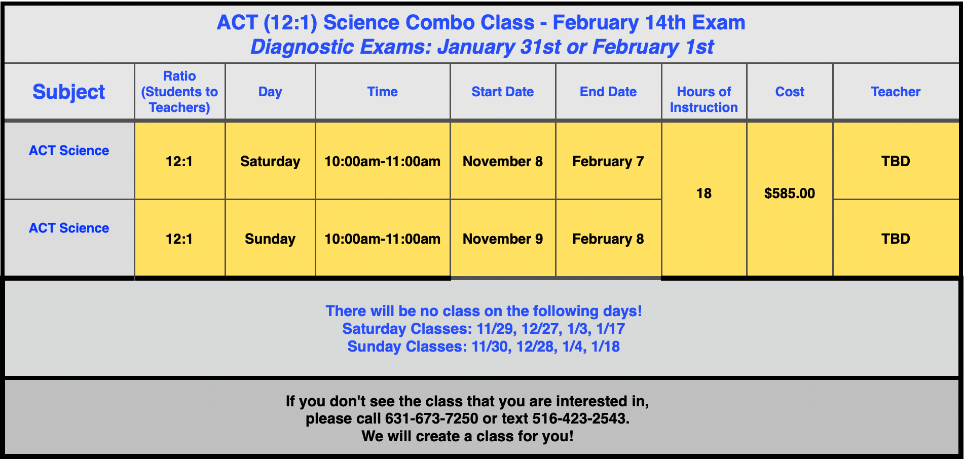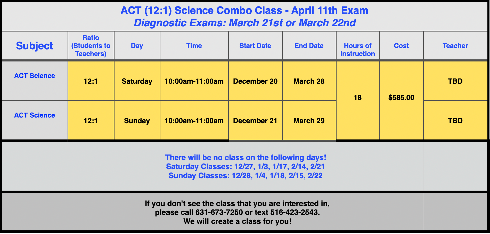 12:1 ACT Science Classes